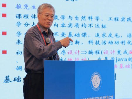 国家级教学名师、教育部高等学校计算机类专业教学指导委员会副主任、全国高等学校计算机教育研究会理事长、北京工业大学蒋宗礼教授做题为“同步国家发展,不断提高课程教学水平”的主旨报告