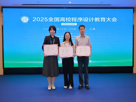 2025全国高校程序设计教育大会于2025年5月23日至25日在上海成功召开。本次大会由教育部高等学校计算机类专业教学指导委员会、全国高等学校计算机教育研究会、《计算机教育》杂志社主办,东华大学和清华大学出版社联合承办。大会吸引了全国数百所高校的教育专家、学者及企业代表参会,参会者达300余人,大会聚焦程序设计教育创新与产业融合,共探人工智能时代下的教学改革路径。我校信息工程学院教师专业王飞、方秦、黄鹂娟、赵勇一行4人应邀参加了本次大会,本次参会也是新E代数智未来产业学院“走出去”系列活动之一,得到了产业学院的支持。