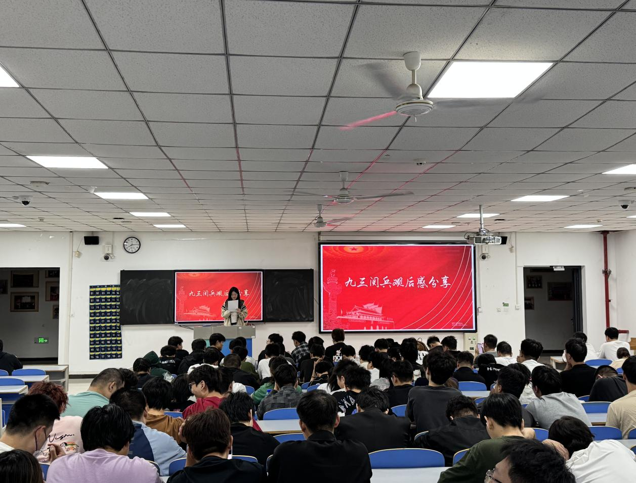 在分享过程中,同学们还结合自身专业,探讨了如何将阅兵中展现的爱国精神、奋斗精神融入到日常学习和未来的职业规划中。大家一致认为,要以实际行动传承抗战精神,在学习上勤奋刻苦,勇于创新,不断提升自己的专业素养,为实现中华民族伟大复兴的中国梦添砖加瓦。