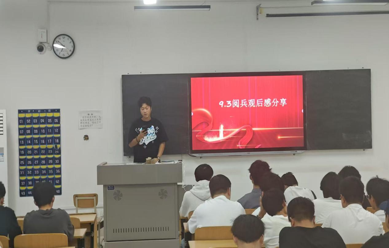 近日,信息工程学院为了加强学生的爱国主义教育,深化对历史的认知,特别组织了一场别开生面的 “九三阅兵观后感分享” 主题班会。班会在学院各班级热烈开展,吸引了众多学生积极参与,共同回顾那段波澜壮阔的历史,分享观看九三阅兵后的深刻感悟。