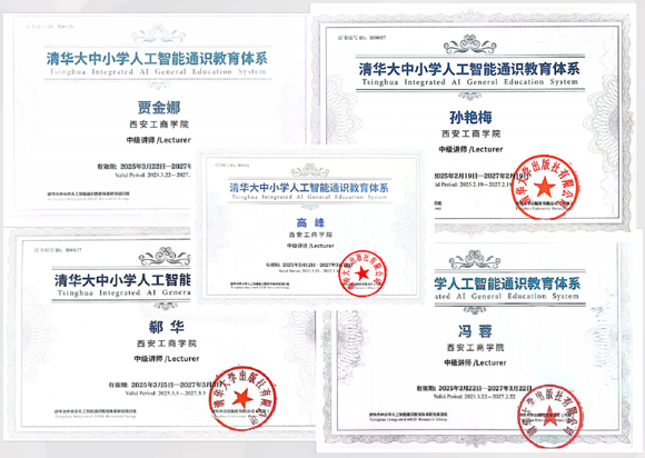 教研室高度重视与高水平教育机构的协同合作,成功获批成为“清华大中小学人工智能通识教育体系研究首批研究与实践单位”。全体教师均通过系统培训与严格考核,获得“清华大中小学人工智能通识教育体系”中级讲师证书,充分展现了团队在人工智能与数字化教育领域的专业水准,为通识教育人才培养奠定了坚实基础。
