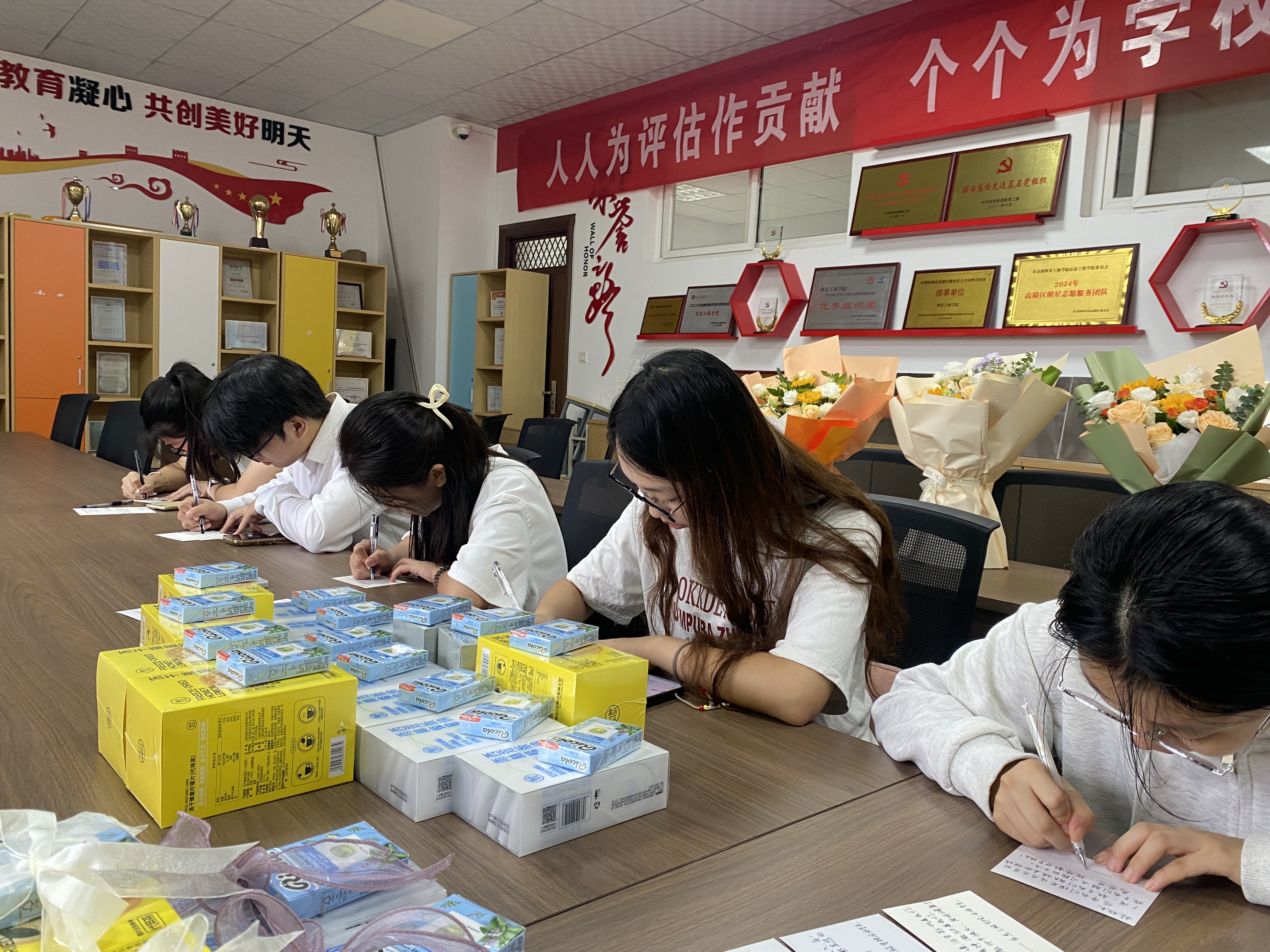 清晨七点半,信息工程学院的会议室里已是一片忙碌景象。学生代表们围坐在一起,将润喉糖和蜂蜜粘在一起。旁边的长桌上,整齐摆放着数十张色彩各异的手写祝福卡片,字里行间满是真挚情感:“李老师,您在电路板前耐心讲解的身影,是我们眼中最美的风景,愿这润喉糖能为您驱散授课后的疲惫”“王老师,每次实验课上您手把手的指导,我们都铭记于心,祝您教师节快乐,平安顺遂”笔尖与纸张的摩擦声,混合着同学们轻声的交流,构成了清晨最温暖的旋律。