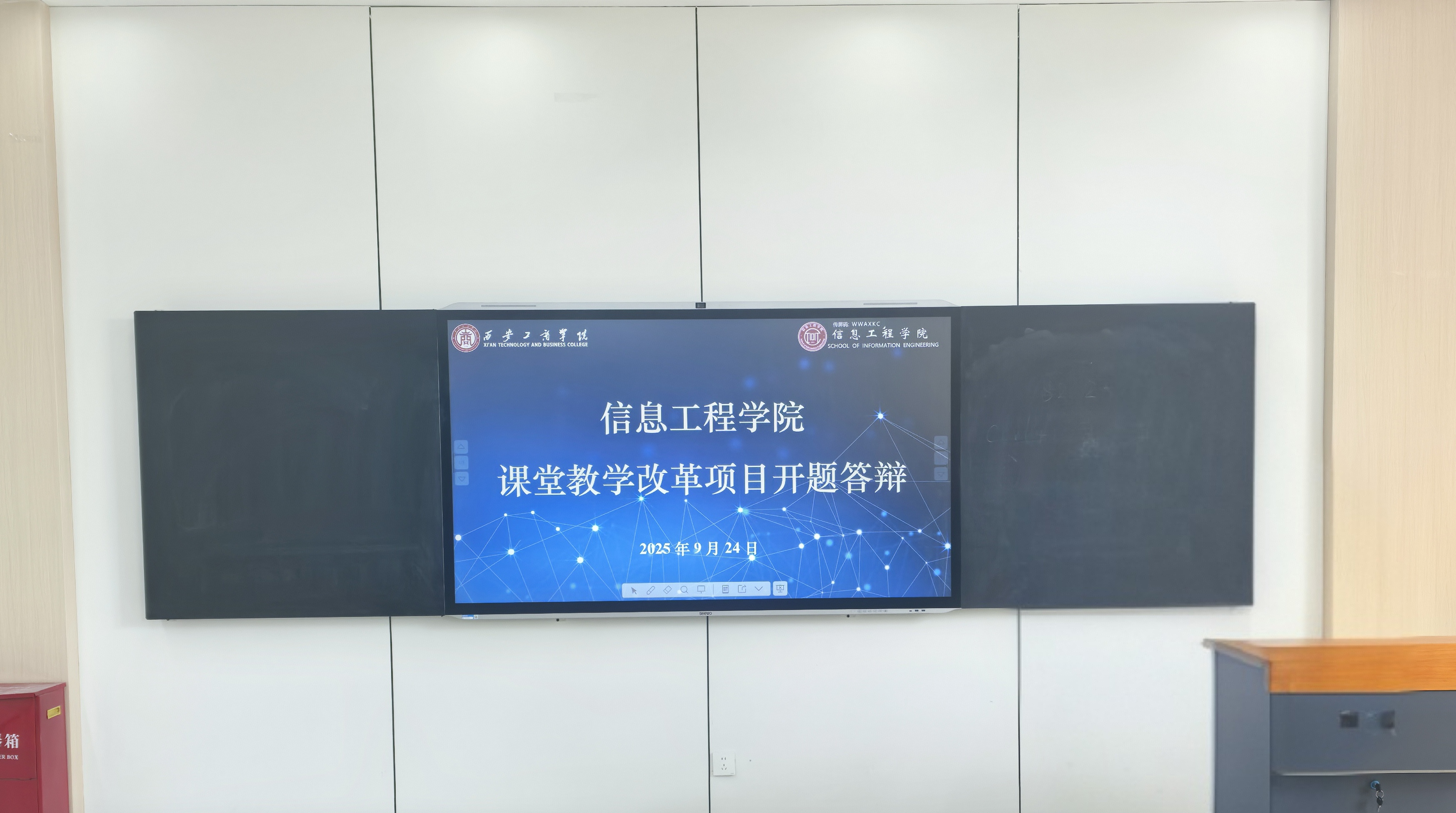 答辩会上,教学副院长王飞首先阐明了本次课堂教学改革的核心目标,以学生发展为中心,从学情出发,聚焦课堂教学中的痛点与难点,通过创新教学模式、优化教学内容、完善评价体系,推动教学质量与人才培养质量双提升。随后,9 组项目主持人按照顺序依次进行汇报,围绕项目研究背景、改革目标、核心思路、实施步骤、预期成果及创新点等方面展开详细阐述。汇报内容涵盖了课程思政、人工智能辅助教学、项目式教学、教赛结合、工程应用以及跨学科融合教学模式探索等多个方面,充分展现了信息工程学院教师在教学改革中的积极思考与实践探索。
