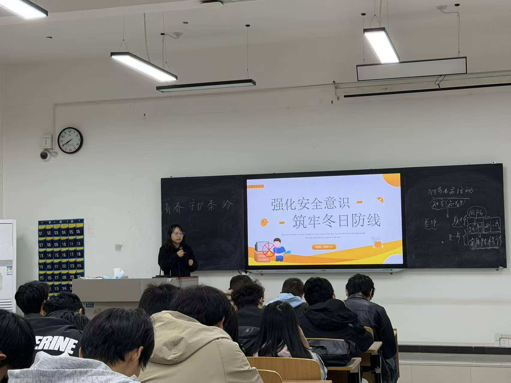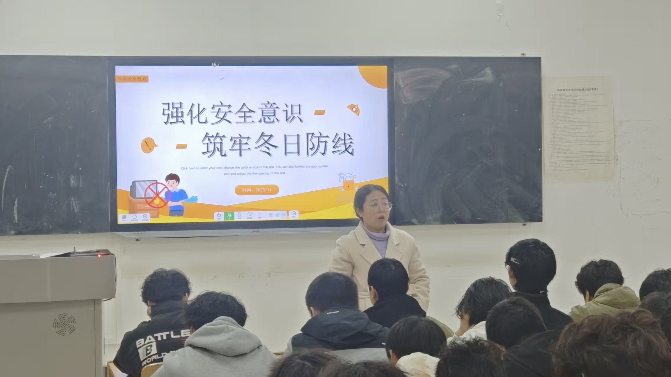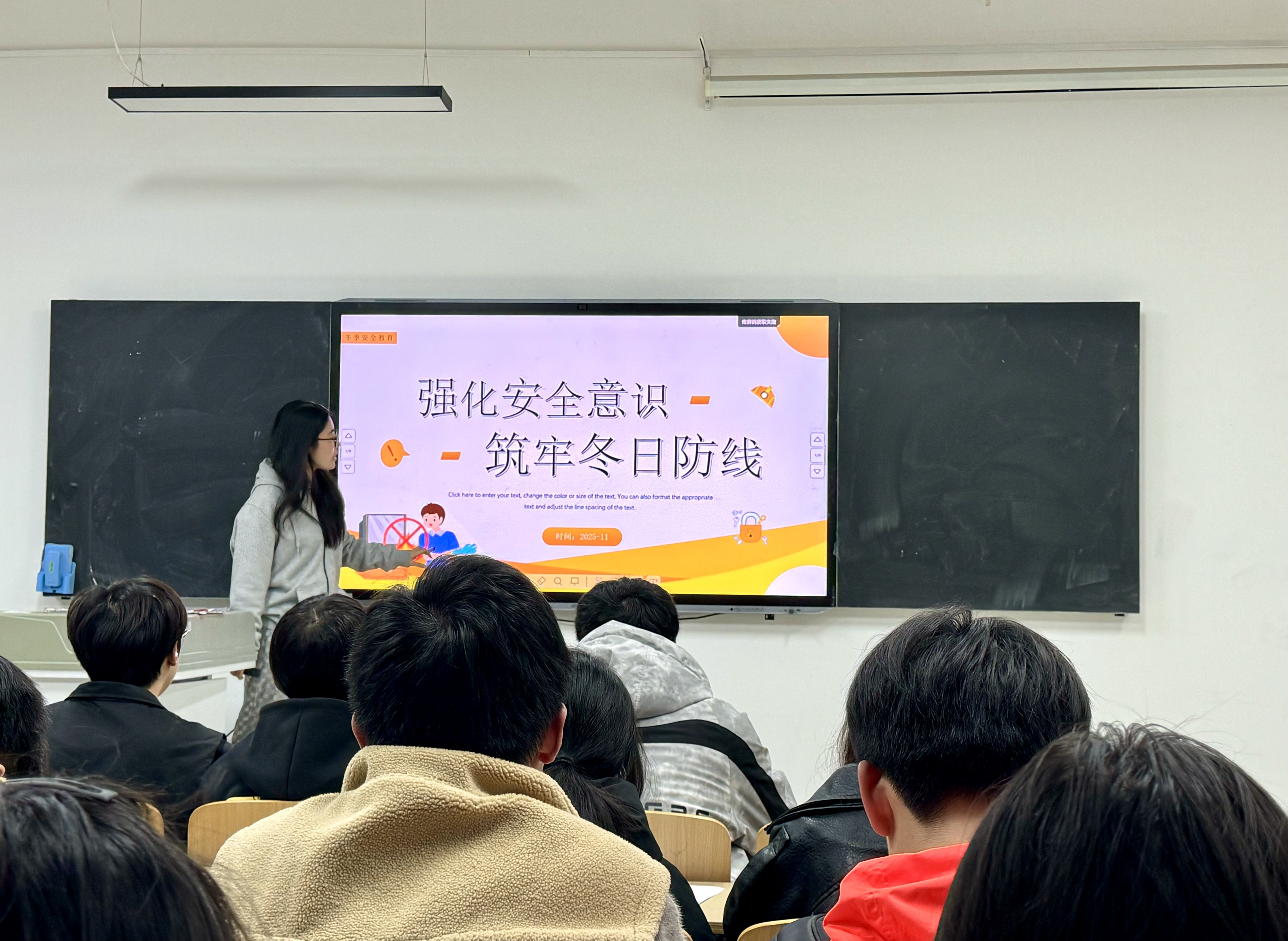 为切实保障大学生身心健康与生命安全,进一步强化冬季安全防范意识,11月9日,我院各班级陆续开展“强化安全意识,筑牢冬日防线”主题教育班会。班会围绕交通安全、防寒防火防溺水、传染病预防、校外出行安全及紧急情况应对等核心内容,通过案例分析、互动问答等形式,为同学们送上了一堂生动详实的冬季安全“必修课”。