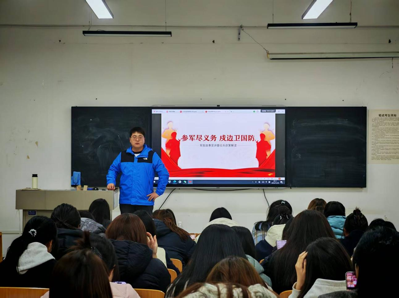 班会尾声,辅导员鼓励同学们将个人理想融入强军伟业。不少同学现场表示要进一步了解报名流程,大二学生王同学说:“军旅故事让我热血沸腾,政策解读也打消了我的顾虑,我要为国防建设贡献青春力量。”