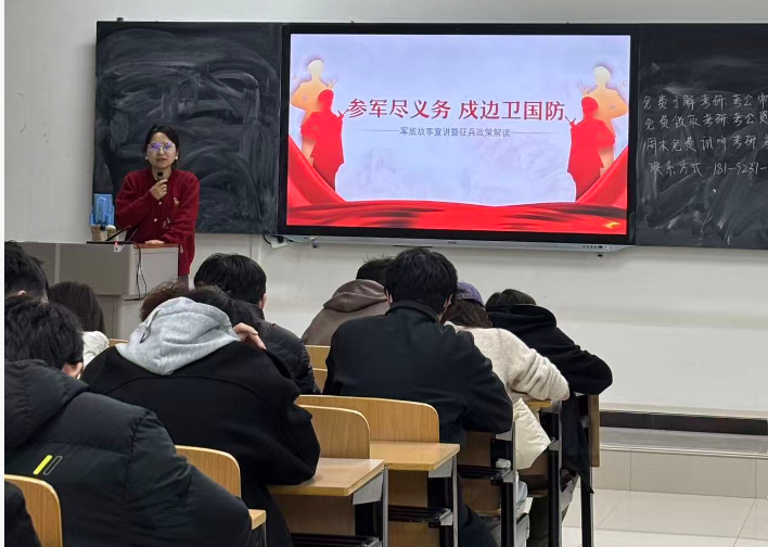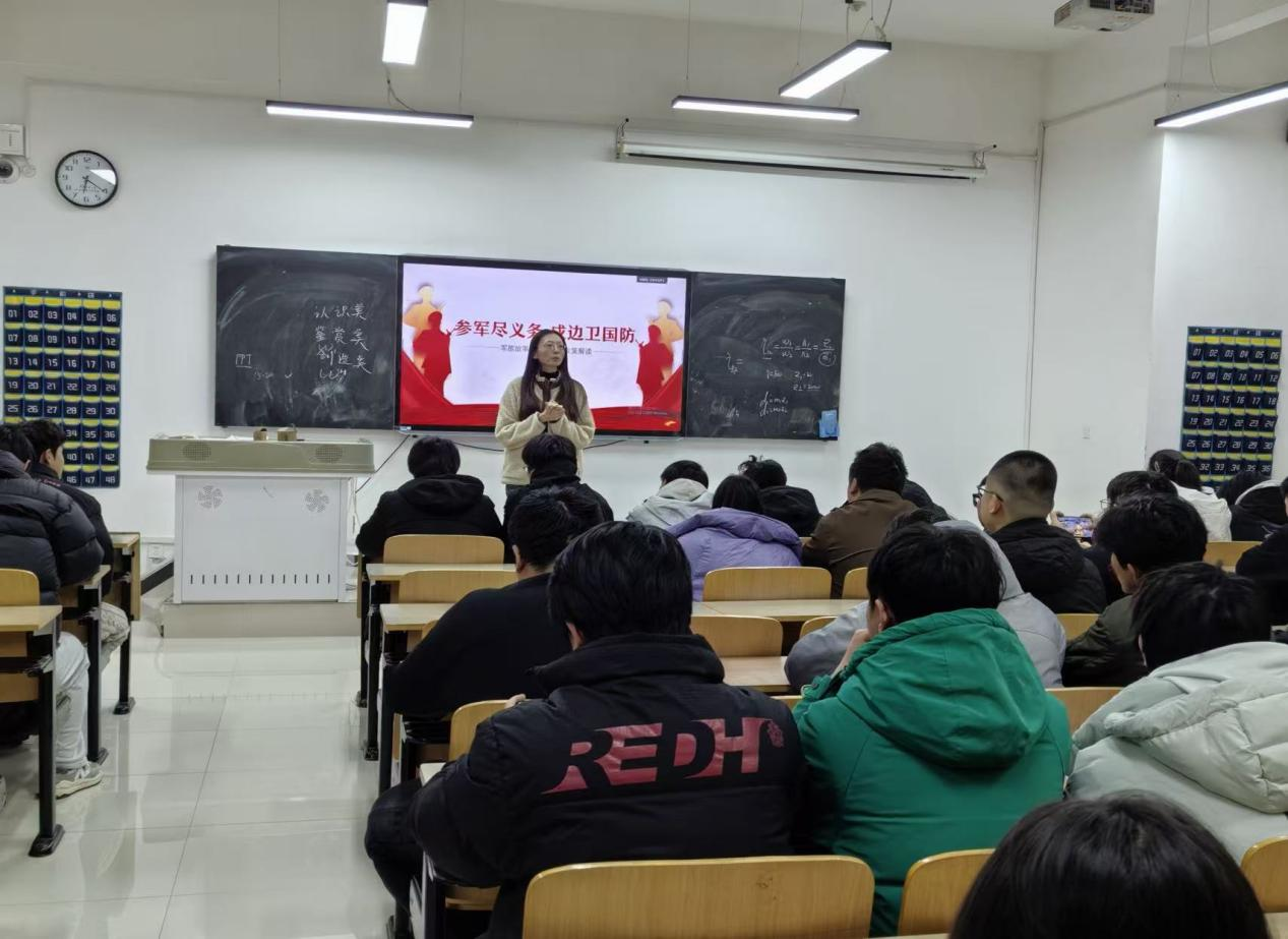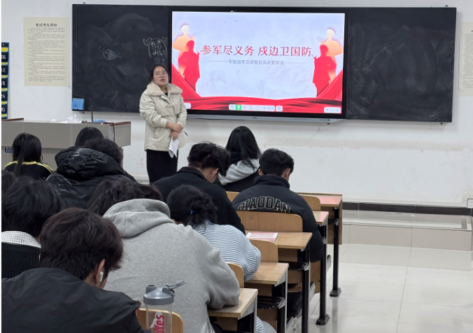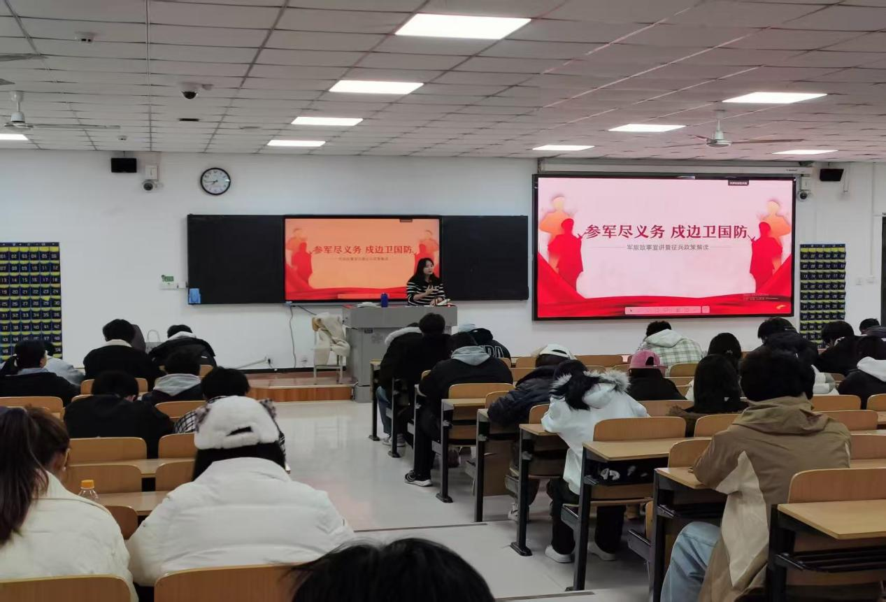 政策解读环节,辅导员结合2025年征兵最新政策,从征集对象、报名时间、体检标准等方面展开讲解。针对学生关心的学业保障问题,重点说明“保留学籍、学费补偿、退役后转专业”等政策,明确本专科生每生每年资助最高2万元学费补偿标准;对升学优惠政策进行细化解读,强调退役后考研初试加10分、高职专科生免试专升本等利好政策。