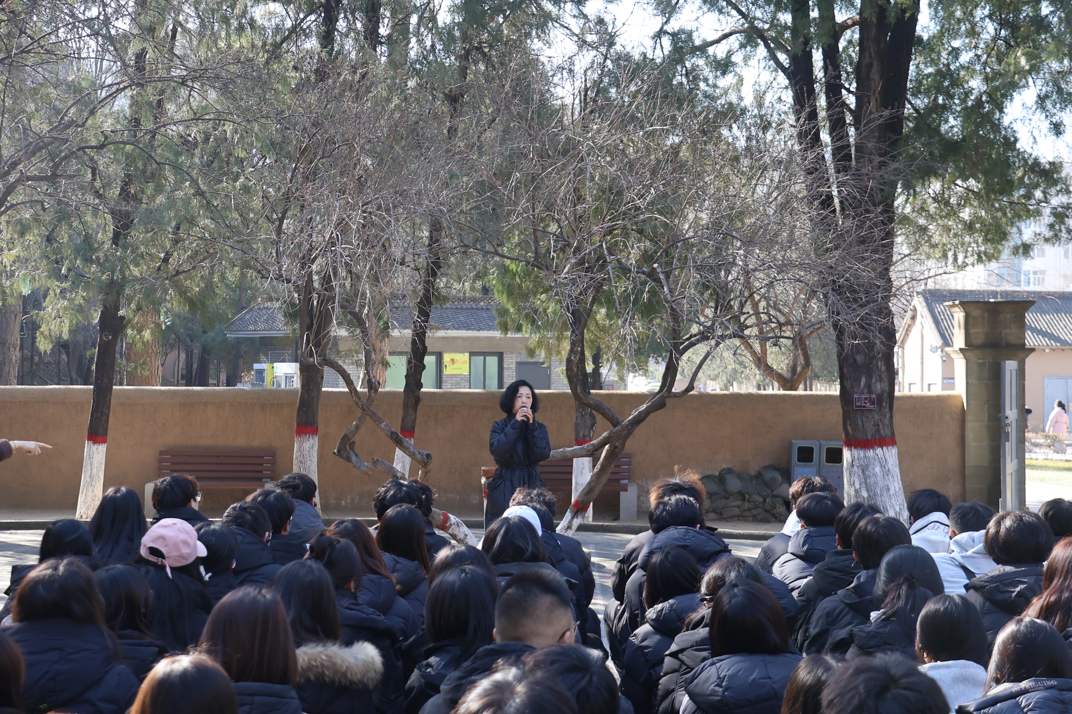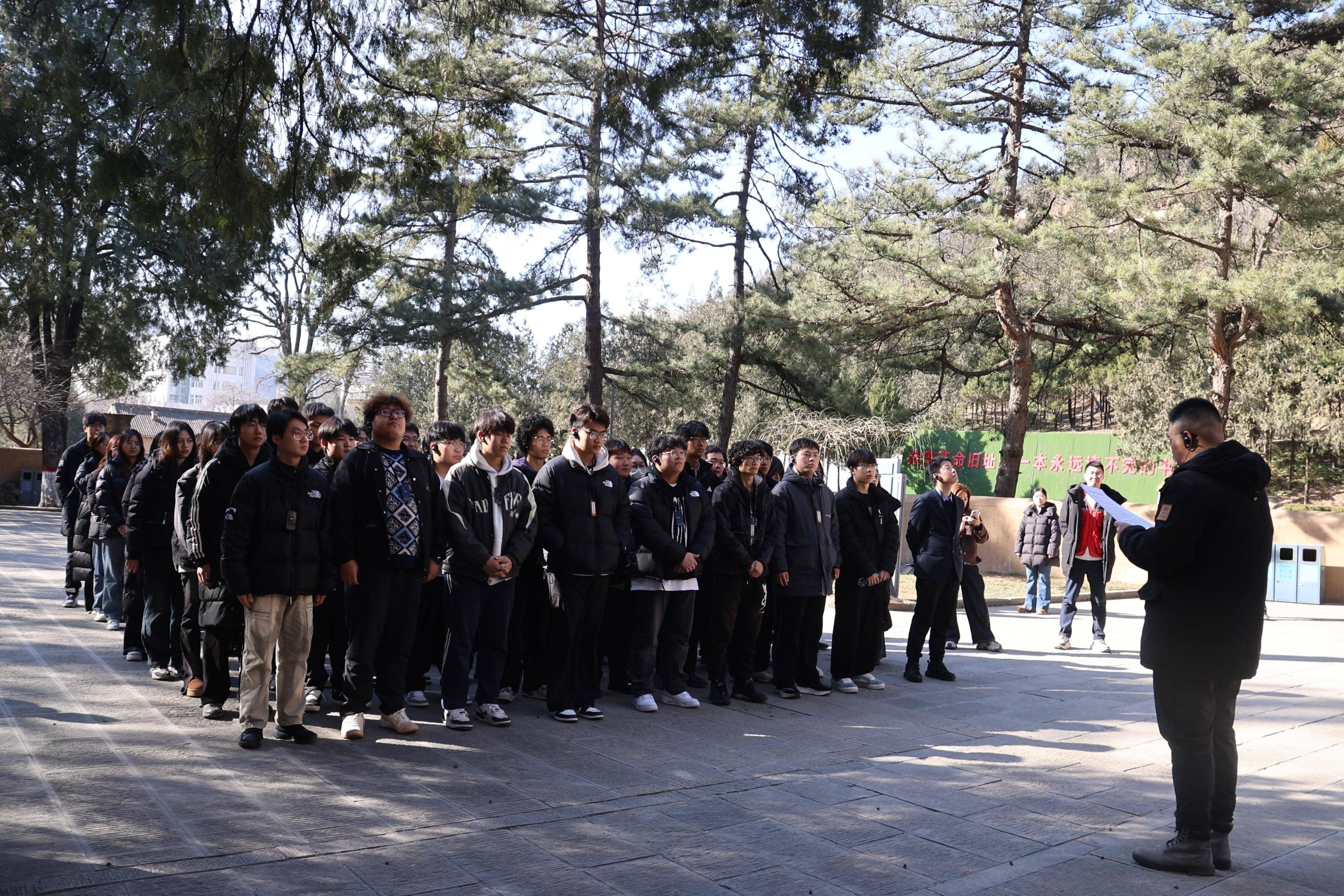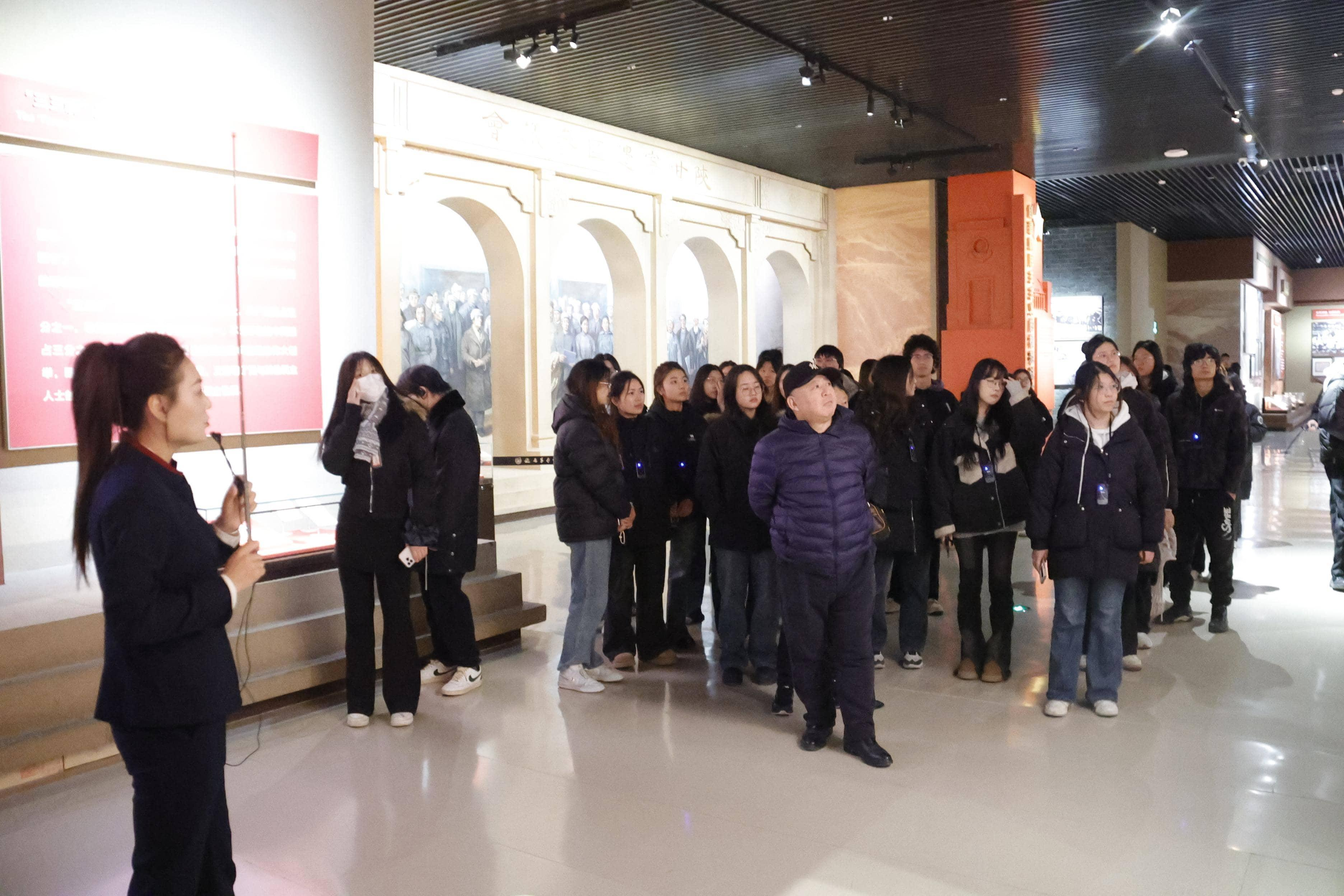 次日,走进延安革命纪念馆,学子们在一幅幅历史照片、一件件实物展品中,系统回望了中国革命的辉煌历程。从红军长征到新中国成立,革命先辈的热血与生命铸就了精神丰碑,让学子们深刻认识到红色政权与新中国的来之不易。枣园革命旧址内,学子们感悟“为人民服务”的根本宗旨,集体诵读《为人民服务》的激昂声浪响彻云霄。
