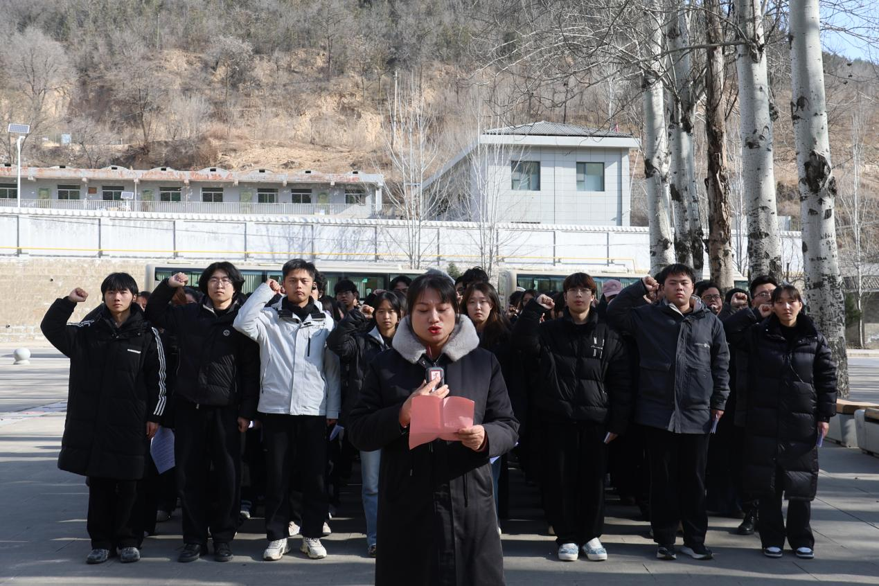 启程之日,学子们满怀崇敬之情,整装出发。车厢内,红色歌曲激昂回荡,革命故事口口相传,一场跨越时空的精神对话悄然展开。抵达延安后,研学活动在杨家岭革命旧址的庄严开营仪式中正式拉开序幕。五星红旗迎风招展,学子们列队肃立,立下传承红色精神、争做时代新人的青春誓言。