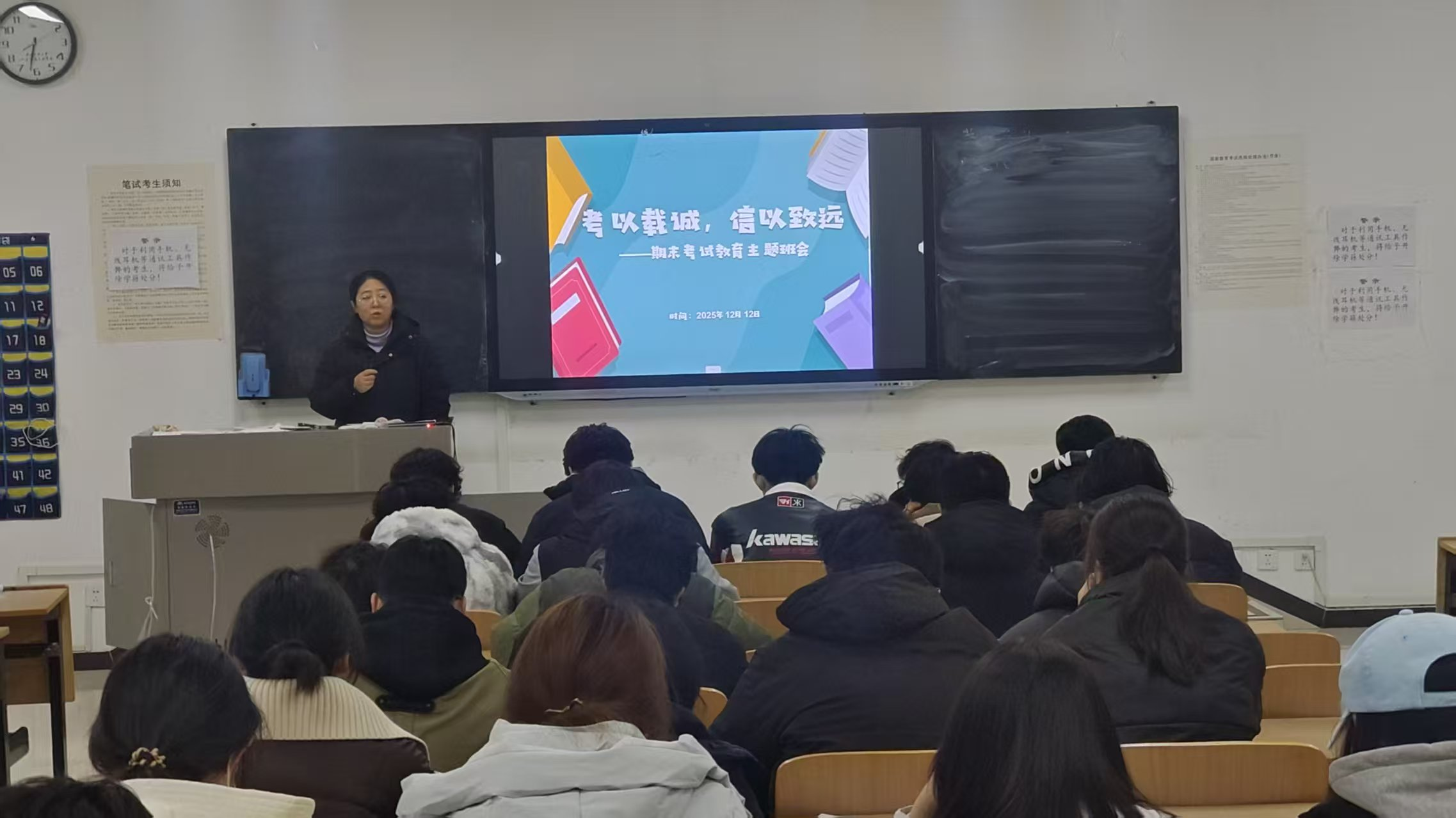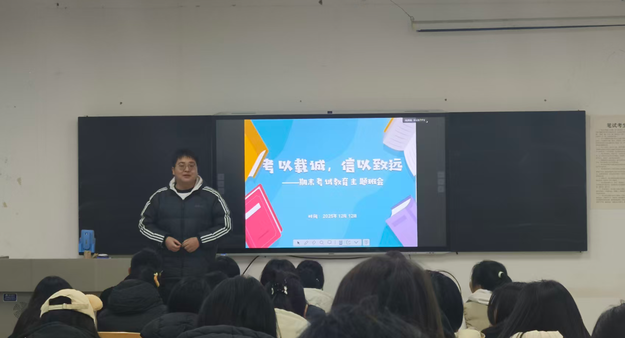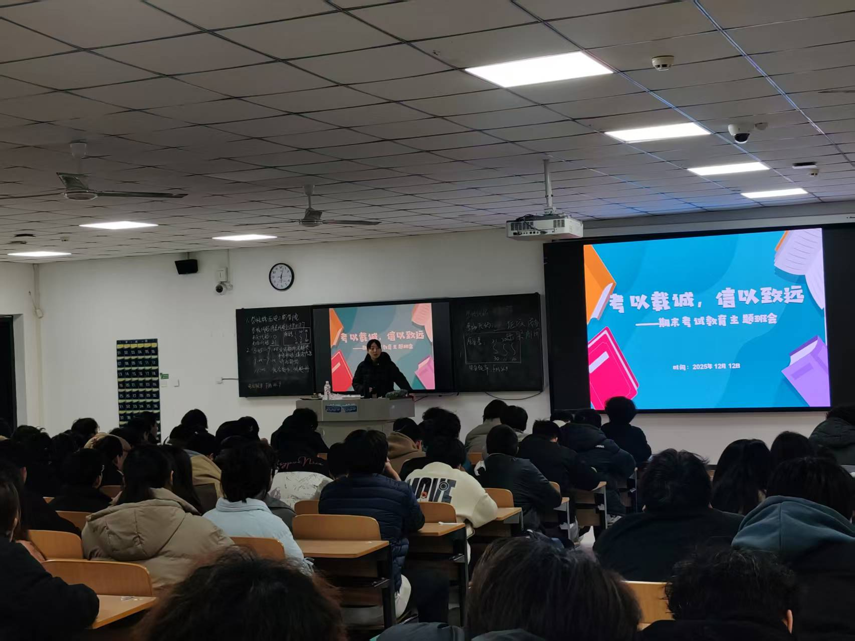 为深入落实学校学风建设工作要求,进一步强化全院学生的诚信应考意识,营造公平公正、求真务实的考试氛围,学院以“考以载诚,信以致远” 为主题,组织全院各年级学生通过晚点名集中参与期末考试教育班会。本次班会由各年级辅导员主持,围绕诚信考试、学风建设、考试规范等核心内容开展专题教育,为即将到来的期末考试筑牢思想根基。