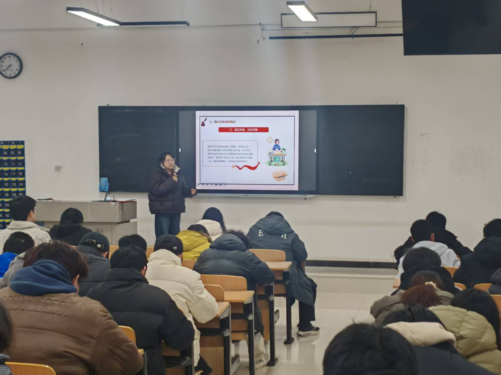 在诚信应考实践指引环节,辅导员给出具体备考建议:积极备考,合理制定复习计划,利用教师答疑、小组互助等资源查漏补缺;考前整理考试证件与合规文具,杜绝携带违规物品;考场上遵守监考要求,独立完成答卷,遇问题举手示意。
