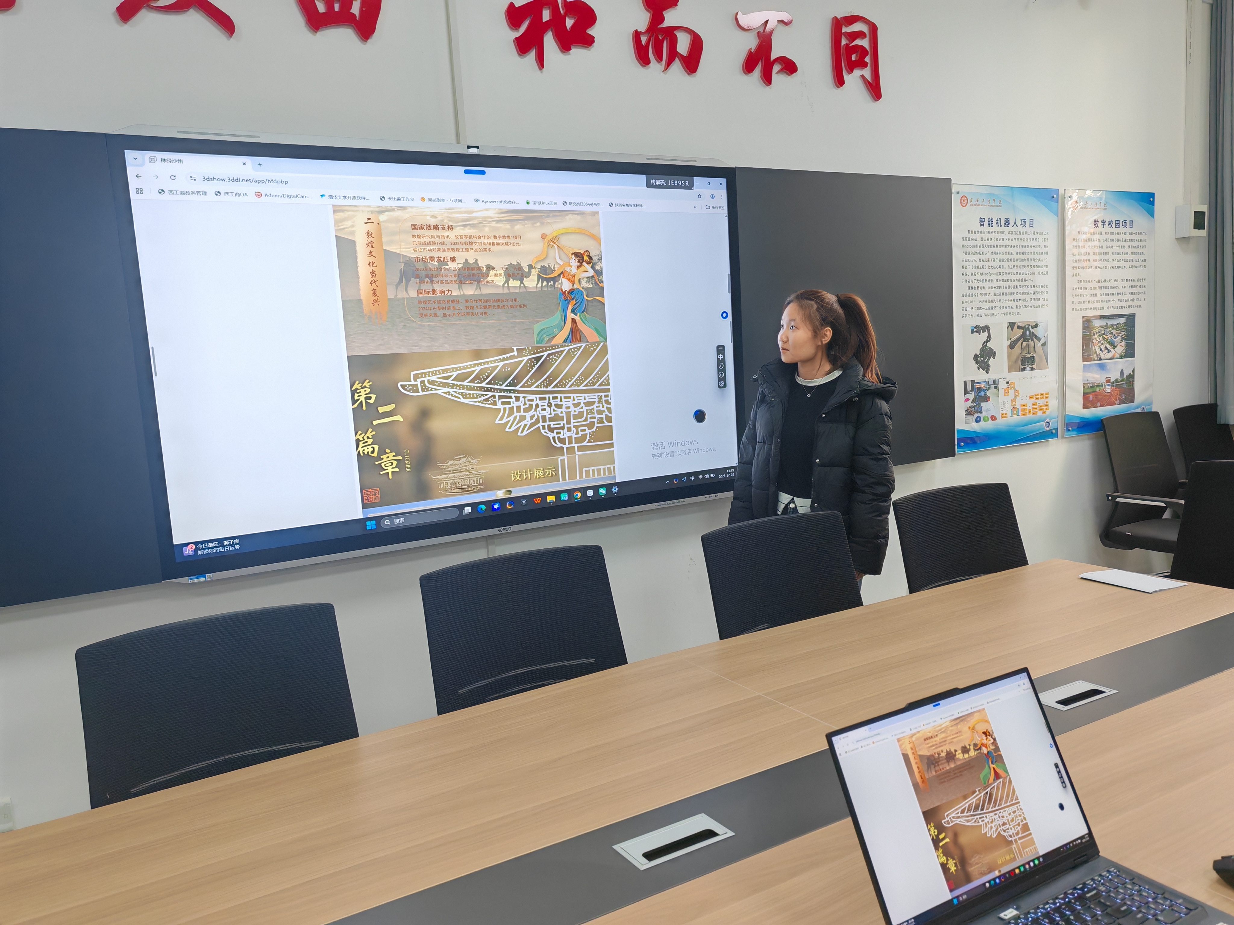 这份馆藏荣誉与双赛佳绩的背后,是一场“文化深挖+技术创新”的执着求索。当“中科视传杯”的命题下达,团队成员陈梦莹、荣诗雨、田赵阳在指导教师靳亮亮、朱俊宇的带领下,没有急于搭建数字模型,而是先沉潜古籍文献,从《营造法式》中拆解榫卯结构的精巧机理,梳理沙州作为丝路重镇的历史脉络。为破解“文化与技术脱节”的难题,他们线上连线非遗传承人请教工艺细节,召开跨学科研讨会,让榫卯“阴阳相合”的哲学思想与沙州“多元交融”的文化特质精准契合——靳亮亮老师搭建起严谨的三维建模技术框架,朱俊宇老师则引导团队赋予数字作品文化温度,避免单纯的工艺复刻。