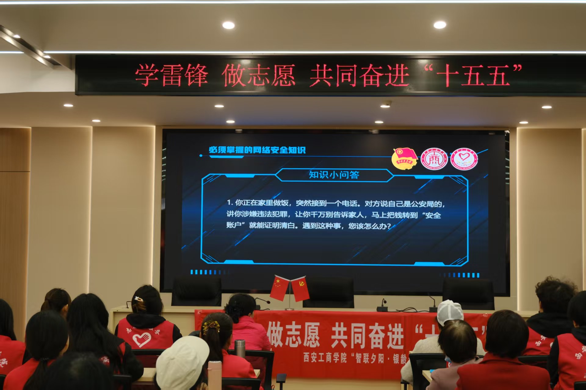 三月春风暖,雷锋精神传。2026年3月11日,信息工程学院青年志愿者走进社区养老服务中心,开展反诈宣讲和健康义诊学雷锋主题志愿服务,用青春行动守护老年群体“钱袋子”与“健康关”。
