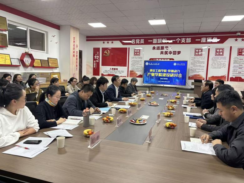 3 月 13 日下午,西安工商学院信息工程学院(新 E 代数智未来产业学院)与软通动力围绕本学院产业学院建设在实验楼 301 会议室成功举行。西安工商学院副董事长、常务副校长黄桂林,信息工程学院执行院长张琳、学工副院长李恒、产教融合与实践教学中心主任寇松及各系主任、教师代表出席会议;软通动力集团高级副总裁、软通教育总裁林涛,软通教育销售管理部总经理李佳、西部战区总经理郝少杰等企业代表应邀参会,双方共商协同育人新机制、共谋产业学院发展新路径。